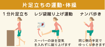 運動器を養うには「片足立ち」の練習がポイントです。つかまってでも1分、片足で立てるようにしましょう。